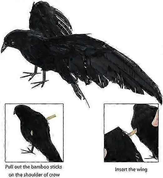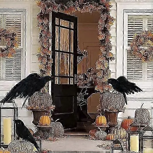 Realistične vrane pernate vrane iščejo realistično vrano, vrane iz črnega perja, ptičje vrane, okraski za zabavo za noč čarovnic