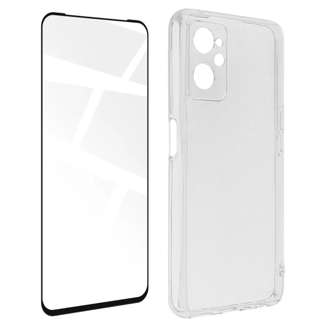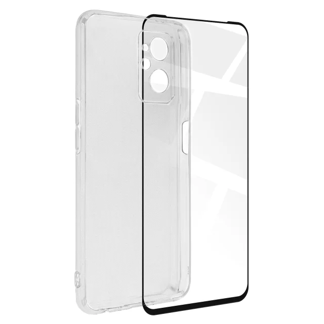 Realme 9i 360° Protection Pack: Transparent Soft Shell Tempered Glass Contour Black