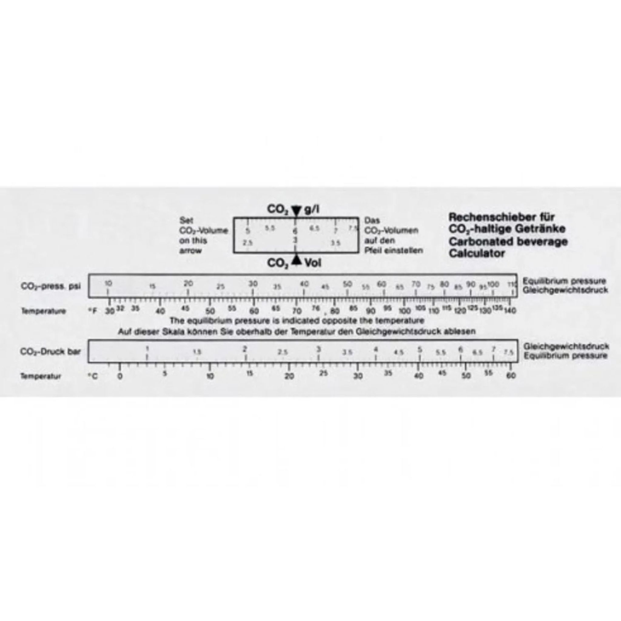Rechenschieber za CO2 je profesionalno orodje, namenjeno natančnemu izračunu tlakov v sistemih za gaziranje pijač. Omogoča hitro in zanesljivo določanje ravnovesnega tlaka v odvisnosti od vsebnosti CO2 ter izračun potrebnega črpnega tlaka za ohranjanje idealnega ravnovesja med kislino in aromo.
