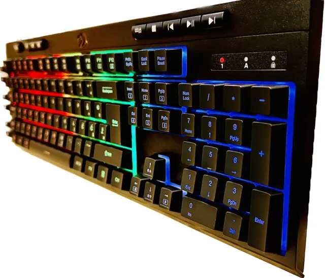 REDRAGON SHIVA K512 RGB tipkovnica je idealna igralna tipkovnica za tiste, ki iščejo ergonomsko in lepo elegantno obliko. Igralna tipkovnica ima odstranljiv ergonomski naslona za dlani in 6 programljivih makro tipk, ki jih lahko poljubno spremenite. Makro tipke najdete na levi strani ergonomske tipkovnice in so označene kot G1 do G6. Tipkovnica ima udoben naslon za zapestje, ki ga lahko tudi odstranite. Naslon za dlani je z magnetom pritrjen na tipkovnico. Poleg tega ergonomska igralna tipkovnica vsebuje 26 tipk Anti Ghosting / Conflict Free. Tipkovnica ima dinamično RGB osvetlitev ozadja, kjer je mogoče spreminjati različne vzorce in barve, intenzivnost / svetlost pa je mogoče nastaviti in izklopiti. Ko tipkate po tipkovnici, boste kmalu opazili, da so tipke tihe in jih komaj slišite, tako lahko preprosto tipkate, ne da bi motili druge. Tipkovnica ima povezavo USB.