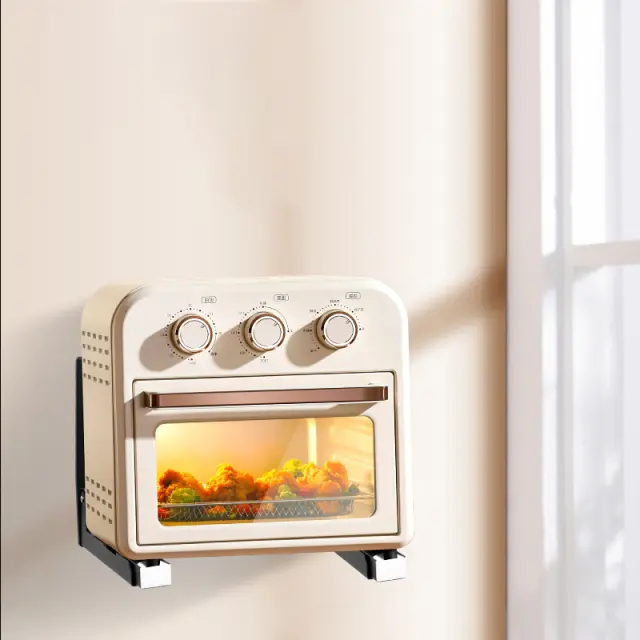 Zasnova, ki prihrani prostor: To stojalo za pečico je zasnovano tako, da poveča prostor vaše kuhinje. Njegova kompaktna velikost se lepo prilega pultu ali pa ga je mogoče namestiti na steno, kar zagotavlja dodaten prostor za shranjevanje brez nereda v kuhinji.