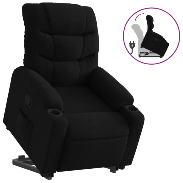 Relax naslanjač - Stol s funkcijo vstajanja črno blago