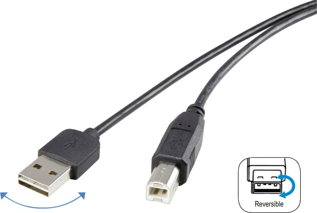 Renkforce USB kabel USB 2.0 USB-A vtič\, USB-B vtič 1.80 m črna primeren za obojestranski priključek \, pozlačeni konektorji RF-4078644