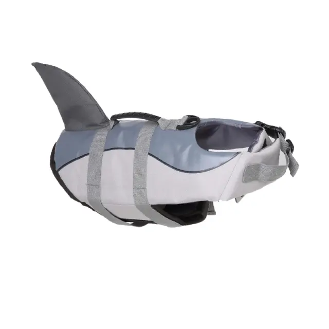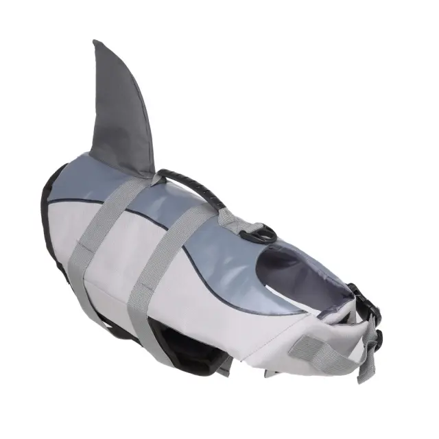 Udobna in elegantna oblika: Ta rešilni jopič je izdelan iz zračne in hitro sušeče oksfordske tkanine, ki vašemu kosmatemu prijatelju zagotavlja optimalno udobje. Elegantna oblika morskega psa doda pridih zabave plavalnim dogodivščinam vašega psa.