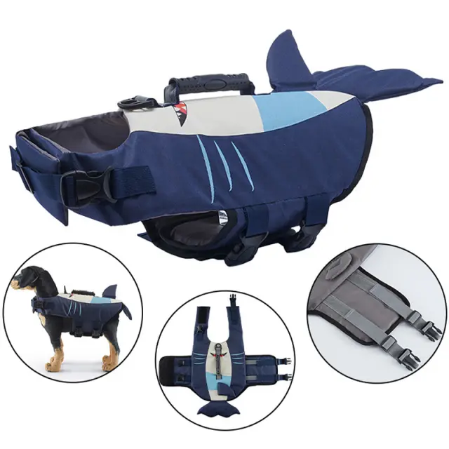 Udobna in elegantna oblika: Ta rešilni jopič je izdelan iz zračne in hitro sušeče oksfordske tkanine, ki vašemu kosmatemu prijatelju zagotavlja optimalno udobje. Elegantna oblika morskega psa doda pridih zabave plavalnim dogodivščinam vašega psa.