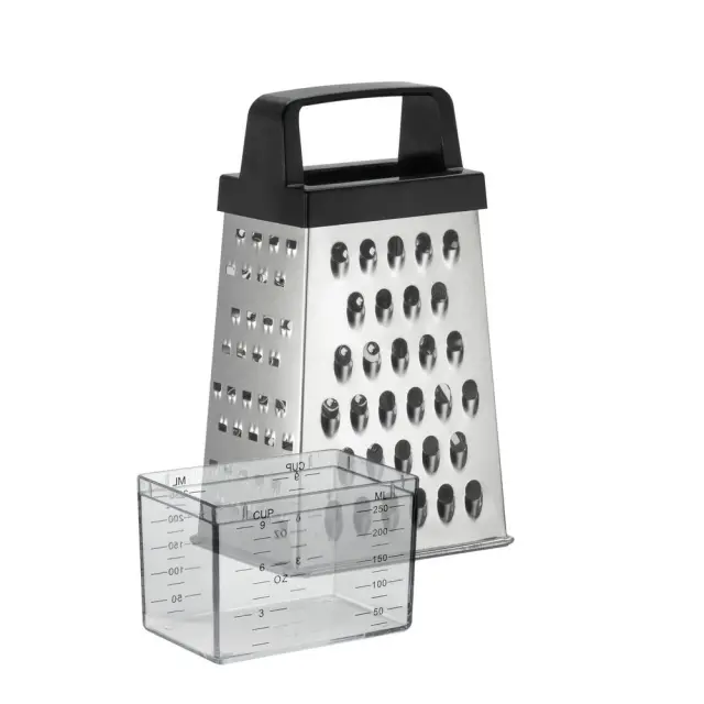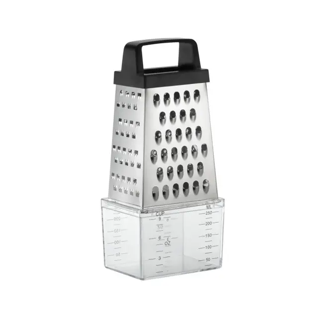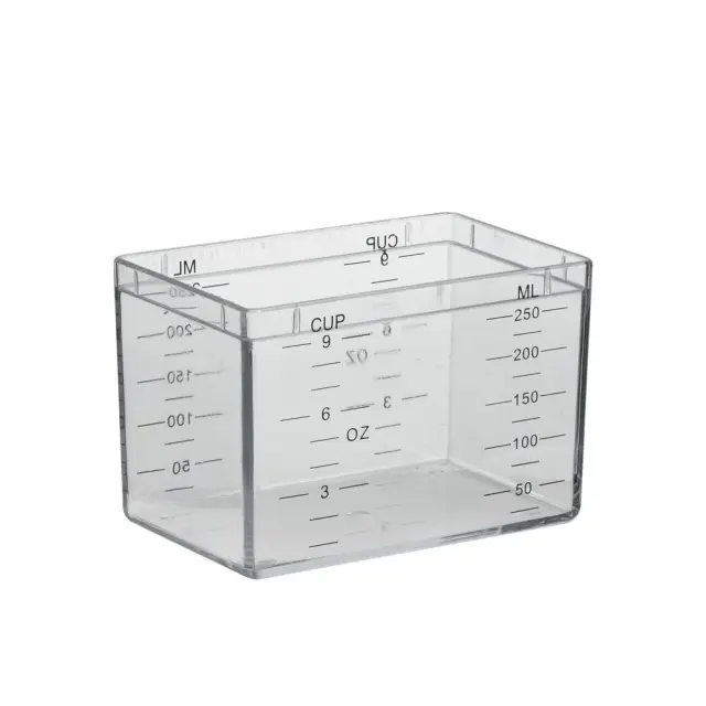 Posodica z merilno lestvico vam bo prišla prav tako pri strganju ribanju ali rezanju, lahko pa jo uporabite tudi za tekočine. S tem boste porabili manj posodic saj bost imeli eno za vse meritve.