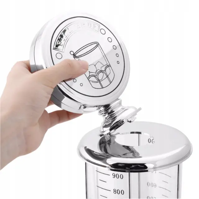 VELIKA KAPACITETA – dozirnik za tekočino ima zelo veliko prostornino, zato vam ga ne bo treba pogosto polniti. Vanj lahko natočite približno 1l tekočine naenkrat, kar vam bo omogočilo dolgotrajno polnjenje kozarcev ali kozarcev gostov .