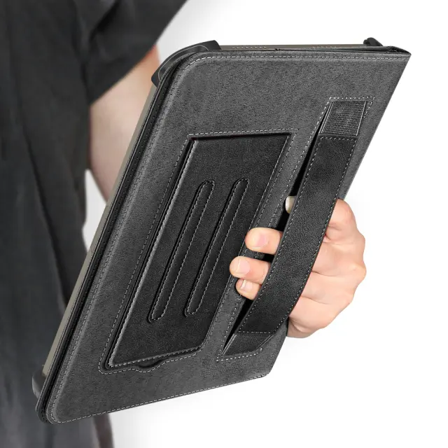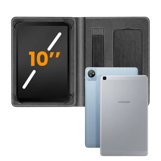 Retro ohišje za 10-palčno tablično napravo z nastavljivim stojalom in ohišjem za kartice, Črna