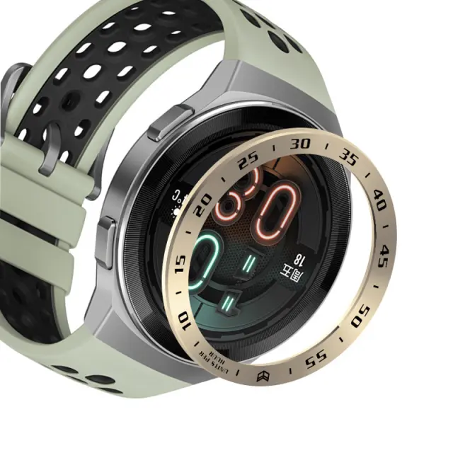 Izboljšan stil: Izboljšajte svoj Huawei Watch GT2E s to retro zlato obrobo s črnim besedilom. Klasična barvna kombinacija doda pridih prefinjenosti in vintage šarma vaši pametni uri, zaradi česar izstopa iz množice. Ta obroba je zasnovana tako, da se brezhibno integrira z vašo uro, izboljša njeno splošno estetsko privlačnost in ji daje edinstven, personaliziran videz.
