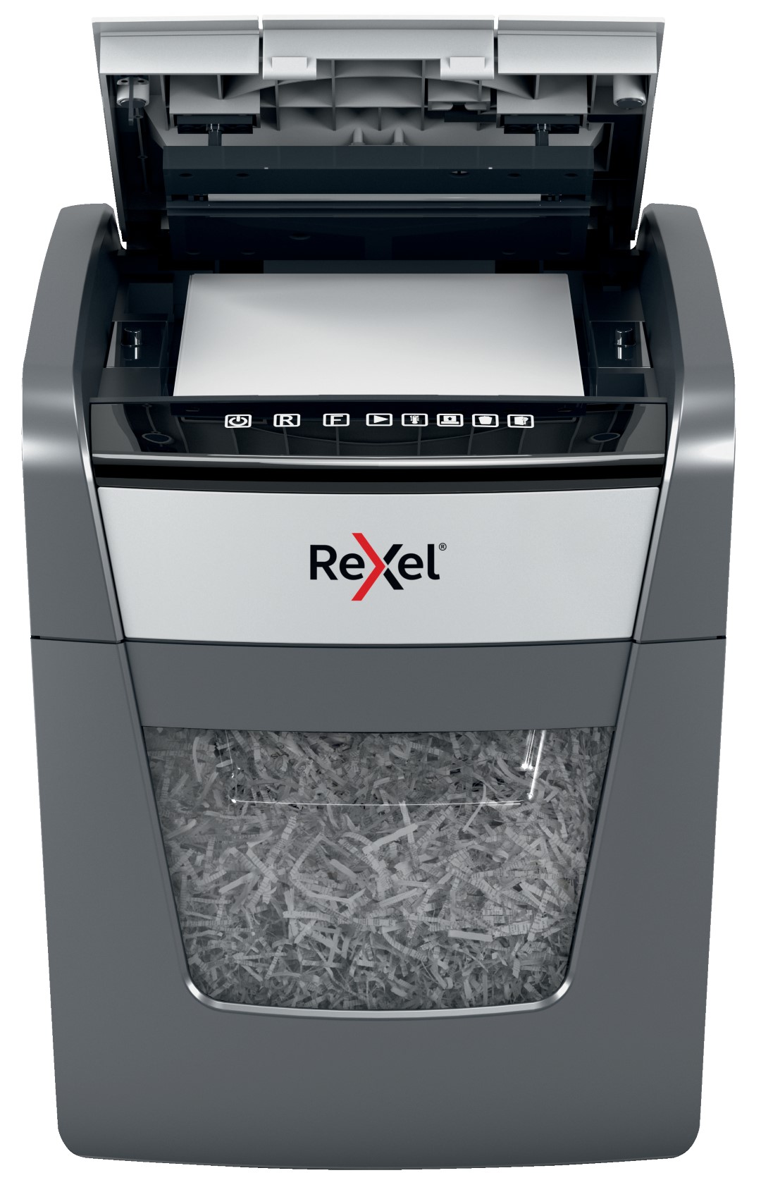 Rexel samodejni uničevalec dokumentov Optimum AutoFeed+ 50X lahko naenkrat povsem avtomatično uniči do 50 listov papirja s križnim razrezom visoke varnostne stopnje P4. Uničeni delčki so velikosti 4x28mm.