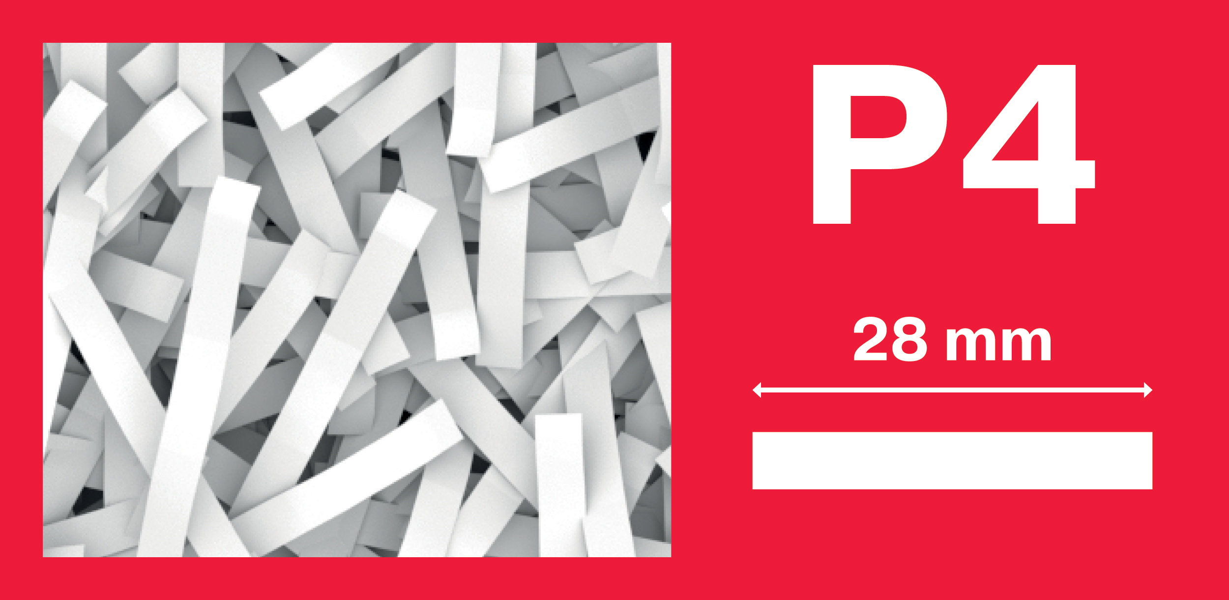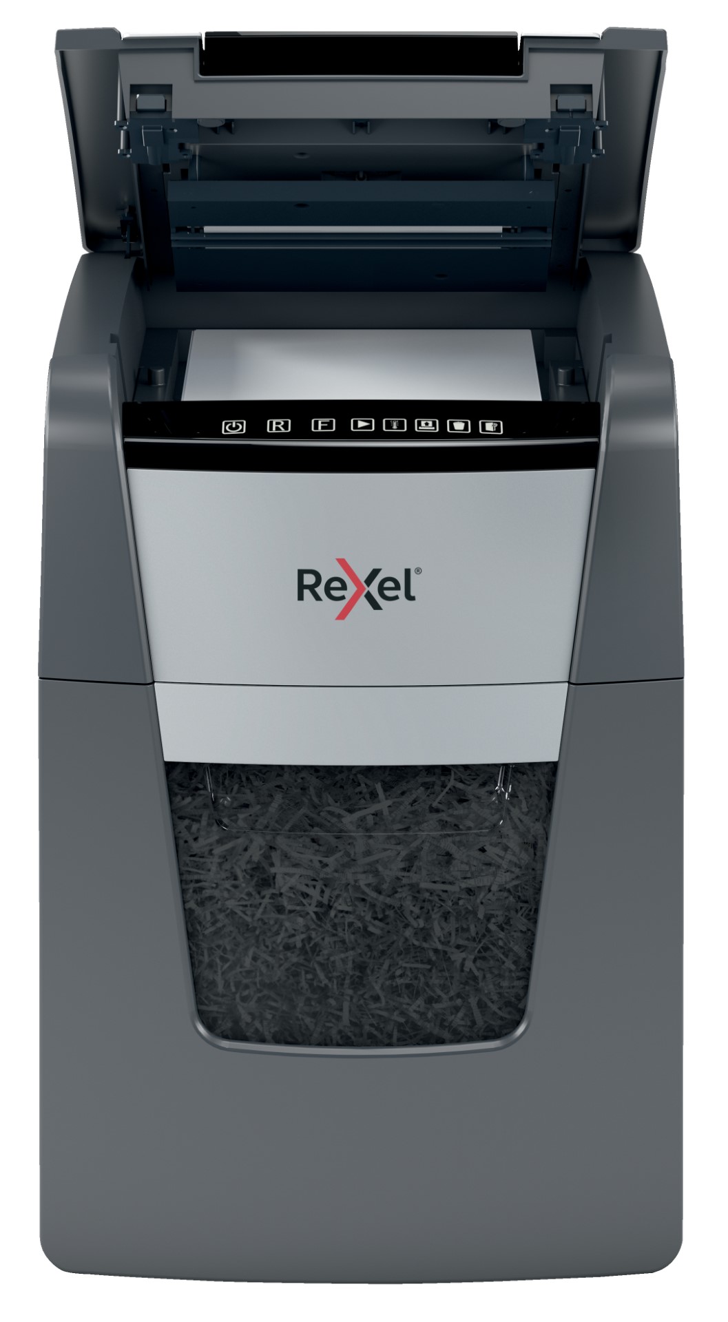 Rexel samodejni uničevalec dokumentov Optimum AutoFeed+ 90X lahko naenkrat povsem avtomatično uniči do 90 listov papirja s križnim razrezom visoke varnostne stopnje P4. Uničeni delčki so velikosti 4x28mm.