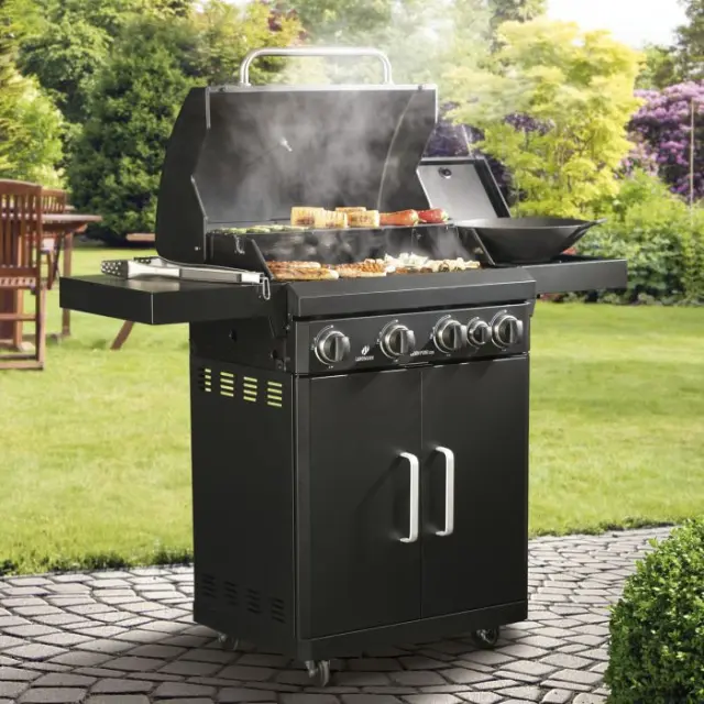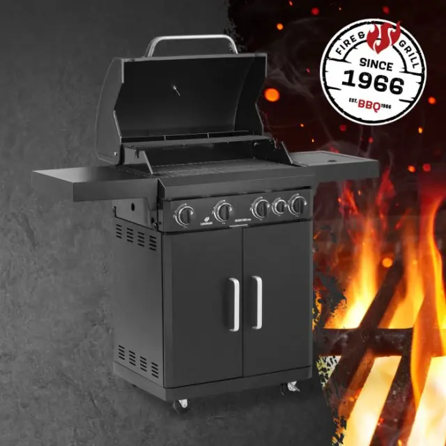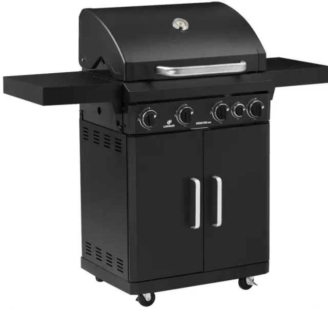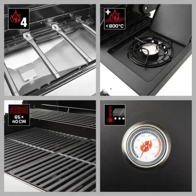 Plinski žar Landmann Rexon Pure 4.1 (01766) ima na voljo štiri 3 kW gorilnike in piezo vžig, ki ne potrebuje baterij.