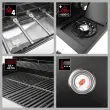Emajlirane litoželezne rešetke s površino 65 x 40 cm zadostujejo, da nasitijo do 6 oseb. Na dodatnem vgrajenem 3 kW stranskem kuhališču Cook-zone lahko pripravljamo razne omake, juhe, rižote, tople napitke in še veliko več, naj se piknik začne!