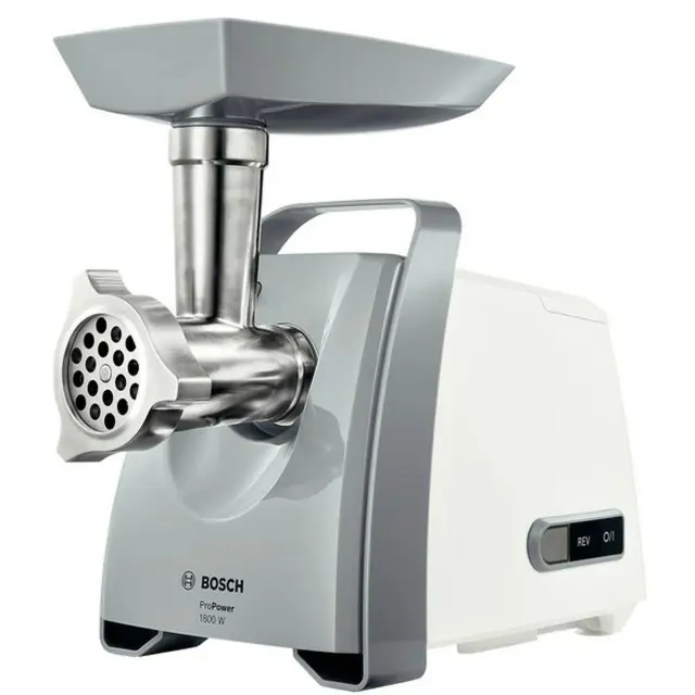 Odkrijte Bosch MFW66020 mesoreznico z močnim 600W motorjem, ki omogoča hitro in enostavno mletje mesa ter drugih sestavin doma. Kompaktna in elegantna bela zasnova se prilega vsaki kuhinji. Rezila iz nerjavečega jekla in zmogljivost obdelave 3 kg/min zagotavljajo enakomerne rezultate. Vključuje funkcijo povratnega zagona in dodatke, kot so 3 sita, lijak, dodatki za kebbe in meso, nedrseči podstavek ter škatla za shranjevanje dodatkov. Deli, ki jih je mogoče prati v pomivalnem stroju, olajšajo čiščenje. Zanesljiv in cenovno dostopen kuhinjski pripomoček za enostavnejšo pripravo vaših najljubših jedi.
