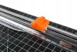 Obrezovalnik papirja ima rezilo, ki je nameščeno na dvignjenem vodilu . Zahvaljujoč tej rešitvi natančna namestitev papirja ni težavna. Pri prilagajanju postavitve ponjave na giljotini je rezilo skrito v vodilu, kar varuje uporabnika pred morebitnimi poškodbami. Po določitvi pravilnega položaja papirja se vodilo spusti in rez se izvede s pritiskom na rezilo, ki se nahaja na vzmetnem mehanizmu, pritrjenem na drsnik . Trimer je lahek in priročen , zato ga enostavno pospravite na polico ali v predal ter hitro in učinkovito postavite na za to namenjeno mesto. Njegovo stabilnost zagotavlja kar 9 podpornih točkki so pena, nedrseče noge. Giljotina ima zamenljivo rezilo , to operacijo pa lahko izvedete po izvleku drsnika, v katerem je nameščena. V ta namen nastavite drsnik na sredino vodila, ga rahlo razmaknite vstran in izvlecite celotno stvar. Nato previdno razstavite drsnik, izvlecite rezilo in ga zamenjajte z novim.