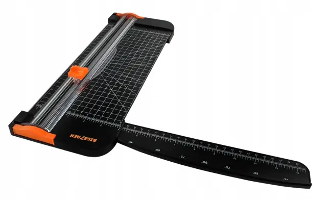 Rezalnik papirja podpira široko paleto velikosti do A3 . Prirezovalnik je torej univerzalen in je lahko orodje, ki se bo uspešno obneslo pri najrazličnejših opravilih . Natančno rezilo naenkrat odreže do 12 listov papirja s težo do 80 g/m² . Razporeditev papirja in določanje linije reza olajša merilo izraženo v centimetrih in inčih . Rezalnik ima tudi kotno oznako , ki omogoča rezanje papirja pod kotom od 45° do 90° . Pri manjših formatih papirja in enostavnejših delih zadošča uporaba osnovne mreže z merami, pri večjih formatih pa je treba postaviti dodatno merilo .pritrjen na dno naprave.