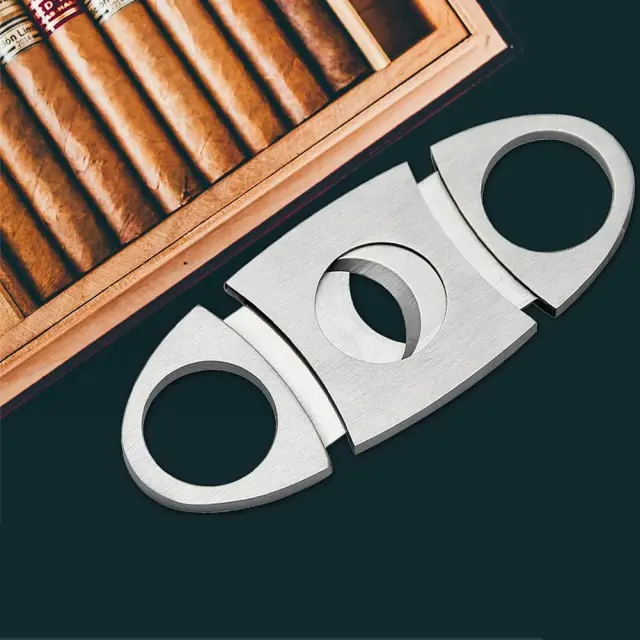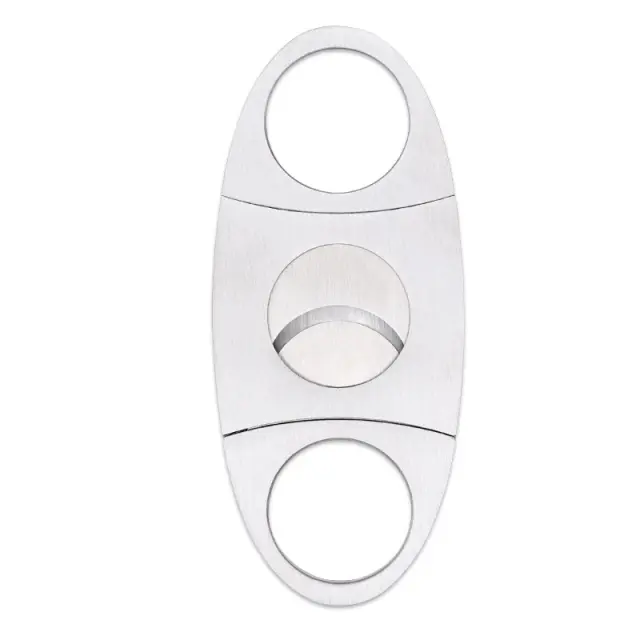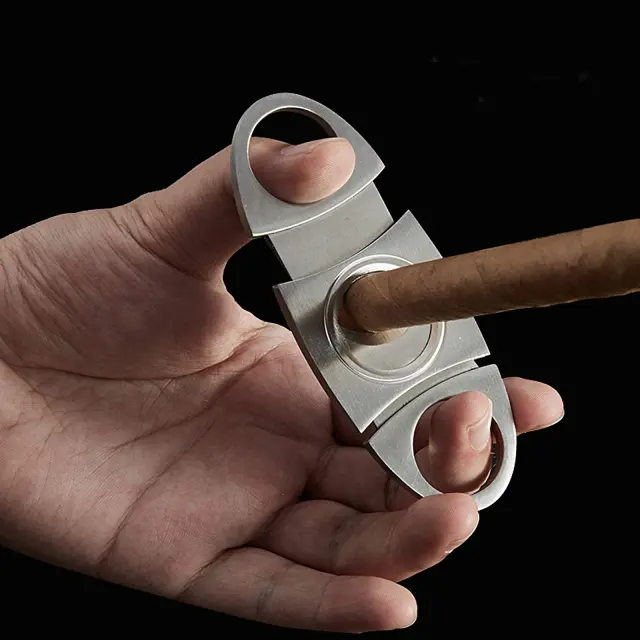 Enostavna uporaba: palec in kazalec položite v dva obroča in jih potegnite narazen. Cigaro vstavite v luknjo in stisnite skupaj. Dvojna giljotina z ravnim rezom zagotavlja natančen in čist rez.