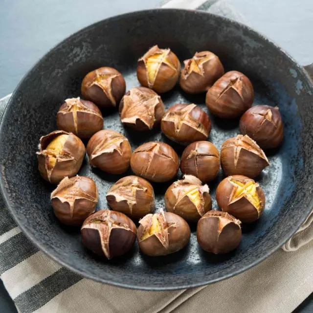 Westmark rezalnik kostanja Kastanietta bo s svojimi z nazobčanimi rezili poskrbel za peko kostanja brez pokanja in za njegovo enostavno luščenje. V zajemalko postavite kostanj in klešče stisnite skupaj. Kostanj bo na svoji lupini dobil križni rez. Ni primerno za pomivanje v pomivalnem stroju.