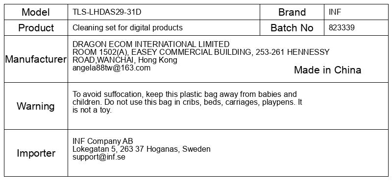 Da se izognete zadušitvi, hranite to plastično vrečko stran od dojenčkov in otrok. Te vrečke ne uporabljajte v zibelkah, posteljah, vozičkih, stajicah. To ni igrača.