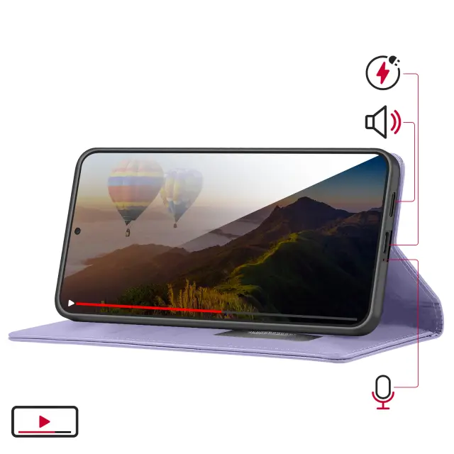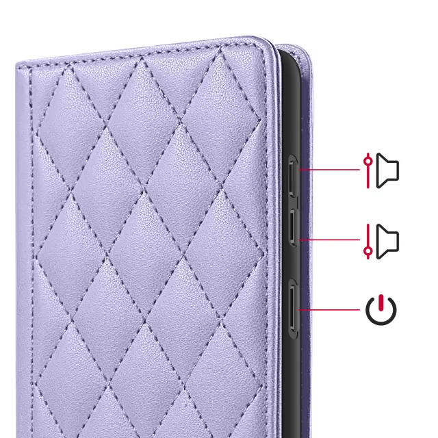 RFID denarnica za Samsung Galaxy S26 s podporo za shranjevanje kartic in videoposnetkov. Vgrajeno blokiranje RFID za omejevanje brezstičnega branja bančnih kartic. Vzdržljiv eko usnje s teksturo diamantnega vzorca, gelska silikonska lupina, odporna na udarce, in stabilen oprijem. Magnetno zapiranje, da je etui varno zaprt vsak dan, brez dodatne debeline.