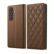 RFID denarnica za Samsung Galaxy S26 s podporo za shranjevanje kartic in videoposnetkov. Vgrajeno blokiranje RFID za omejevanje brezstičnega branja bančnih kartic. Vzdržljiv eko usnje s teksturo diamantnega vzorca, gelska silikonska lupina, odporna na udarce, in stabilen oprijem. Magnetno zapiranje, da je etui varno zaprt vsak dan, brez dodatne debeline.