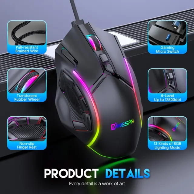 RGB Gaming Žična Miška z Visoko Natančnostjo in Prilagodljivo RGB Osvetlitvijo