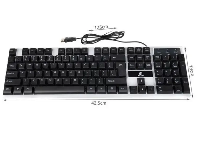SPECIFIKACIJA – žična tipkovnica: da; dolžina kabla: 125 cm; vmesnik: USB 2.0; polna velikost: da; število tipk: 104; osvetlitev ozadja: LED; mehansko: da; nastavljive noge: da; mere: 13 / 42,5cm; teža: 0,52 kg