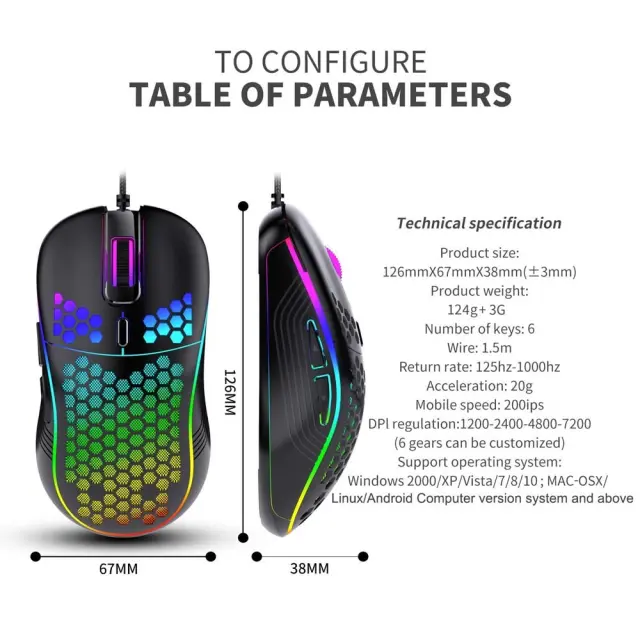 RGB Light USB Žična Igralna Miška - Žični Model z Nastavljivim DPI Black