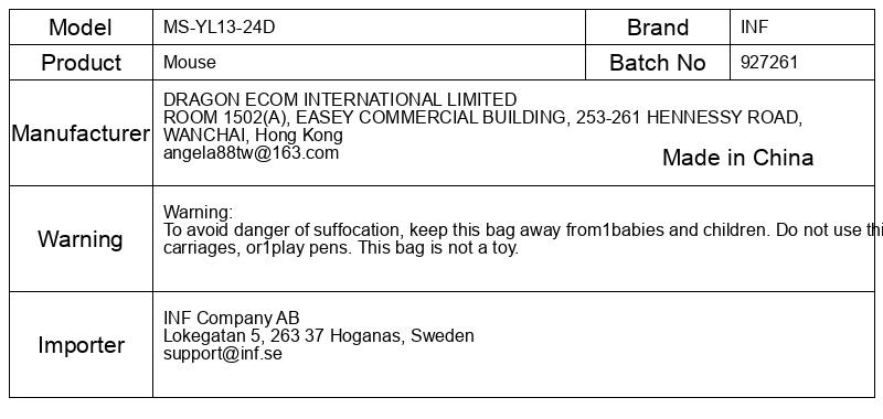 Opozorilo: Da bi se izognili nevarnosti zadušitve, vrečko hranite izven dosega dojenčkov in otrok. Vrečke ne uporabljajte v otroških posteljicah, vozičkih ali igralih. Ta vreča ni igrača.