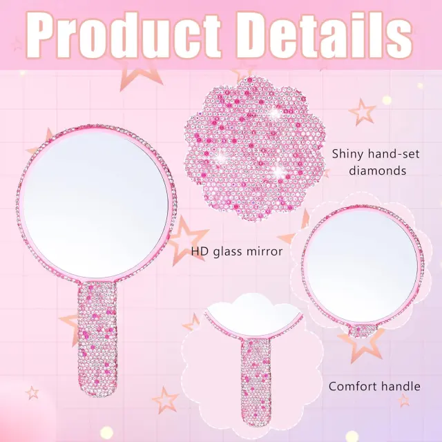 Rhinestone Ročno Ogledalo Poročno Svetleče Ročno Ogledalo Srčkano Bleščeče Kozmetično Prenosno Okrasno Osebno Ogledalo za Ličenje za Ženske Dekleta Ne