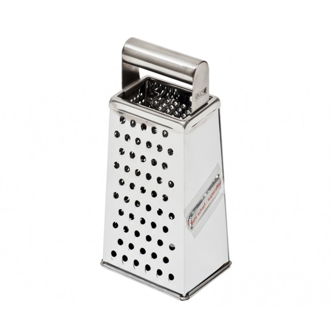 Eva ribežen Spezial s štiri različnimi stranmi za ribanje različnih živil, je v celoti izdelan iz nerjavečega jekla. Njegov odebeljen ročaj omogoča trdno držanje in enostavno rokovanje. Ima 2 ploskvi po 10 cm in 2 po 8 cm. Primeren je za pomivanje v pomivalnem stroju.