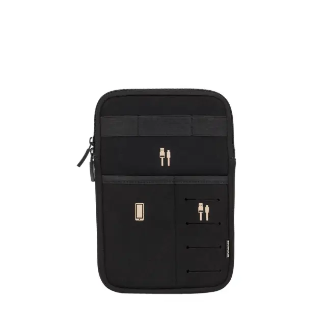 Potovalni organizator je nepogrešljiv pripomoček za vse, ki veliko potujejo in želijo imeti vse potrebno pri roki. V torbo lahko pospravite tablico od 7 do 8 inch, powerbank, pisala, telefon, dokumente. Torba ima velik predal na zadrgo, dva manjša in tri elastične zanke.