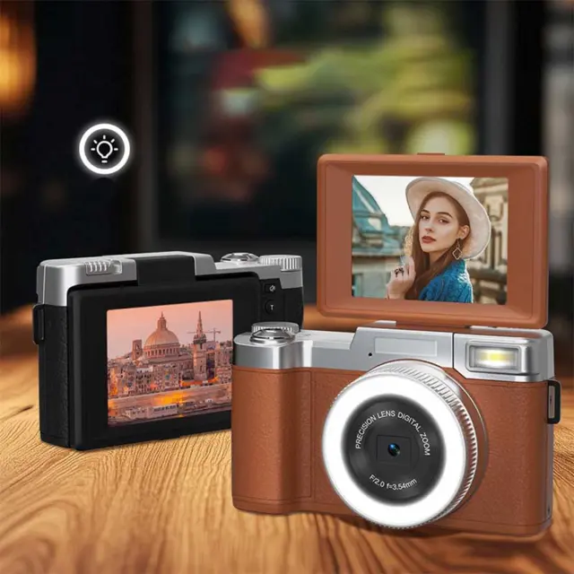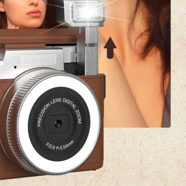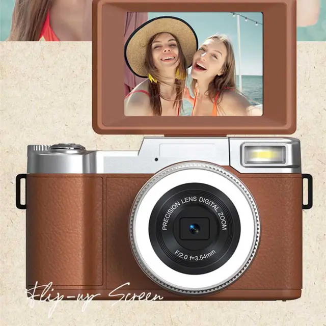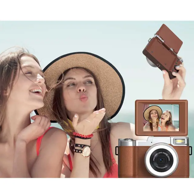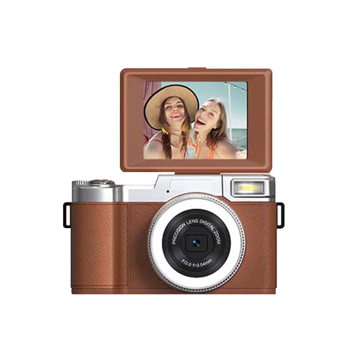 Rjava digitalna kamera z zaslonom na preklop, 1080p HD snemanje in lepotni način