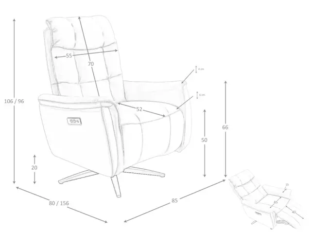 Rjavi usnjeni vrtljivi fotelj model 5117 Angel Cerdá S.L. Vrtljivi fotelj relax z nasloni za roke sodobne zasnove s sedežem in naslonom, oblazinjenim v rjavo goveje usnje. Ta vrtljivi fotelj relax z električnim relax mehanizmom je tako zaradi svojega sloga kot zaradi črno epoxy pobarvanih nog iz nerjavnega jekla idealen za popolno ravnovesje med slogom in udobjem. Dimenzije izdelka: 85 x 80 x 106 cm. - Usnjeno oblazinjenje tega fotelja bo poskrbelo za eleganco in prepoznavnost, poleg tega pa bo tudi funkcionalen in dekorativen kos za vaše prostore. - Ta fotelj ima sistem Relax, ki vam zagotavlja dodatno udobje, ki ga potrebujete za sprostitev. Njegovo upravljanje z dvema električnima gumboma zagotavlja tudi večjo praktičnost in funkcionalnost, saj lahko neodvisno nastavite naslonjalo za hrbet in naslonjalo za noge. - Oblazinjeno oblazinjenje sedeža in naslona ter oblazinjenje iz poliuretanske pene s prostornino 25 kg/m3 zagotavljajo največje udobje. - Vrata USB in USB-C s pozornostjo do podrobnosti omogočajo, da so vaše naprave v neposredni bližini, kar zagotavlja popolno kombinacijo oblikovanja in vsestranskosti.