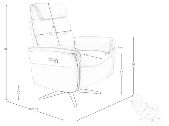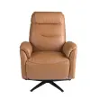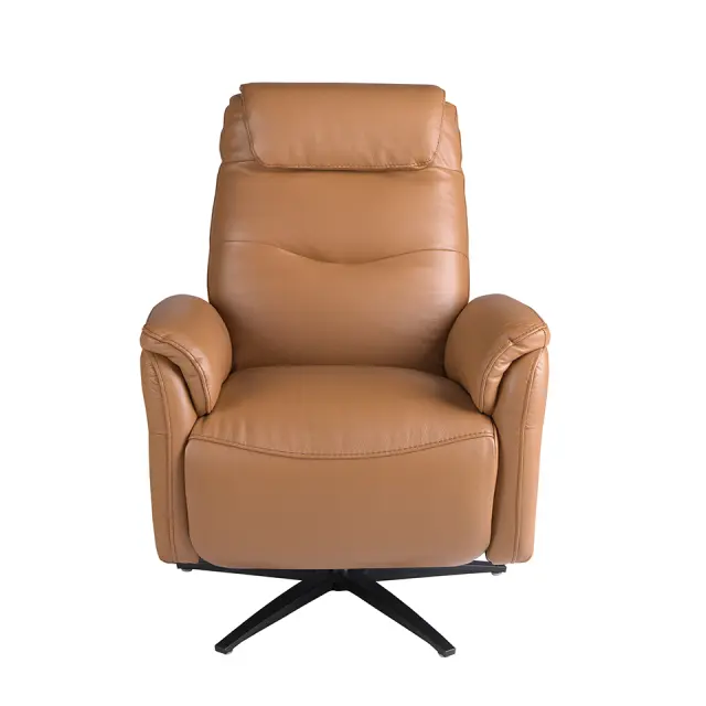 Rjavi usnjeni vrtljivi fotelj model 5115 Angel Cerdá S.L. Vrtljivi fotelj za sprostitev z nasloni za roke sodobne zasnove s sedežem in naslonom, oblazinjenim v rjavo goveje usnje. Ta vrtljivi fotelj relax z električnim mehanizmom za sproščanje je tako zaradi svojega sloga kot zaradi mat črnih nog iz nerjavečega jekla idealen za zagotavljanje popolnega ravnovesja med slogom in udobjem. Dimenzije izdelka: 78 x 96 x 105 cm. - Usnjeno oblazinjenje tega fotelja bo poskrbelo za eleganco in prepoznavnost, poleg tega pa bo tudi funkcionalen in dekorativen kos za vaše prostore. - Ta fotelj ima sistem Relax, ki vam zagotavlja dodatno udobje, ki ga potrebujete za sprostitev. Njegov električni pogon zagotavlja tudi večjo praktičnost in funkcionalnost. - Oblazinjeno oblazinjenje sedeža in naslona ter oblazinjenje iz poliuretanske pene s prostornino 25 kg/m3 zagotavljajo največje udobje. - Vrata USB in USB-C s pozornostjo do podrobnosti omogočajo, da so vaše naprave v neposredni bližini, kar zagotavlja popolno kombinacijo oblikovanja in vsestranskosti.
