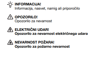 Slike o varnosti izdelka vsebujejo opozorila na embalaži izdelka in lahko vključujejo ključne varnostne informacije, povezane z določenim izdelkom.
