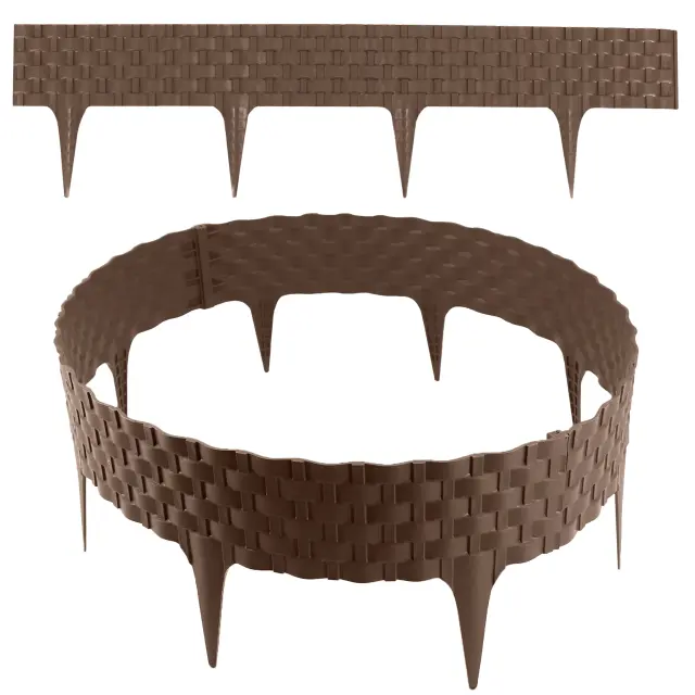 Zahvaljujoč elastičnemu materialu so možne ravne, okrogle ali valovite linije. Module enostavno povežete med seboj in jih z gumijastim kladivom pritrdite v tla – brez posebnega orodja. Za daljše robove lahko brez težav dodate dodatne sete. V rjavi barvi se dizajn lepo poda naravnim vrtovom in ustvari topel okvir z ratan strukturo.
