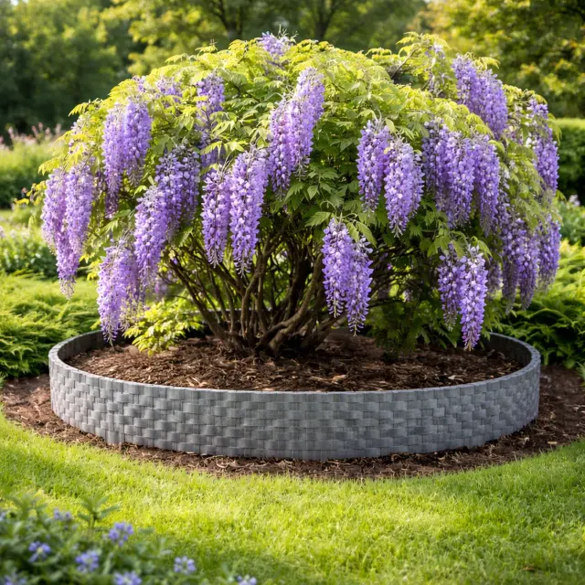 Fleksibilna oblika in modularna razširitevZahvaljujoč elastičnemu materialu so možne ravne, okrogle ali valovite linije. Module enostavno povežete med seboj in jih z gumijastim kladivom pritrdite v tla – brez posebnega orodja. Za daljše robove lahko brez težav dodate dodatne sete. V sivi barvi se dizajn odlično poda k sodobnim vrtovom in ustvari eleganten okvir z ratan strukturo.