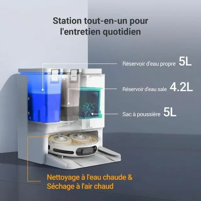 Ezviz RS20 Pro je večfunkcijski robotski sesalnik, ki sesa in pomiva tla z močjo sesanja 7200 Pa. Opremljen je z napredno navigacijo in zaznavanjem ovir za učinkovito in temeljito čiščenje. Napravo je mogoče upravljati na daljavo prek mobilne aplikacije in je združljiva z Google Assistant in Alexo. Z avtonomijo do 220 minut in štirimi načini čiščenja se prilagaja vsem vrstam tal. Njegova moderna in elegantna zasnova se popolnoma prilega vašemu domu. Dodatne funkcije vključujejo samodejno polnjenje, samodejno praznjenje posode za prah, čiščenje z vrtljivimi krpami, samodejno polnjenje čiste vode in samodejno čiščenje krp.