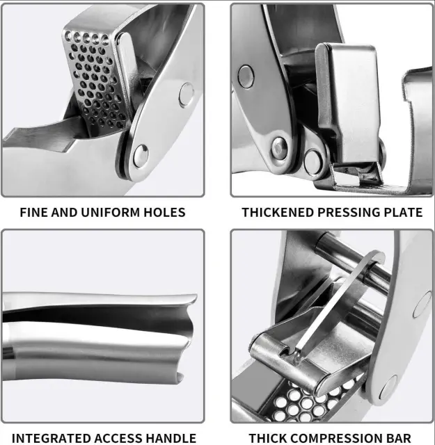 Vrhunska kakovost: Ta stiskalnica za česen je izdelana iz visokokakovostnega nerjavečega jekla 304 in je izdelana tako, da traja. Je odporen proti rji in koroziji, kar zagotavlja dolgo življenjsko dobo.