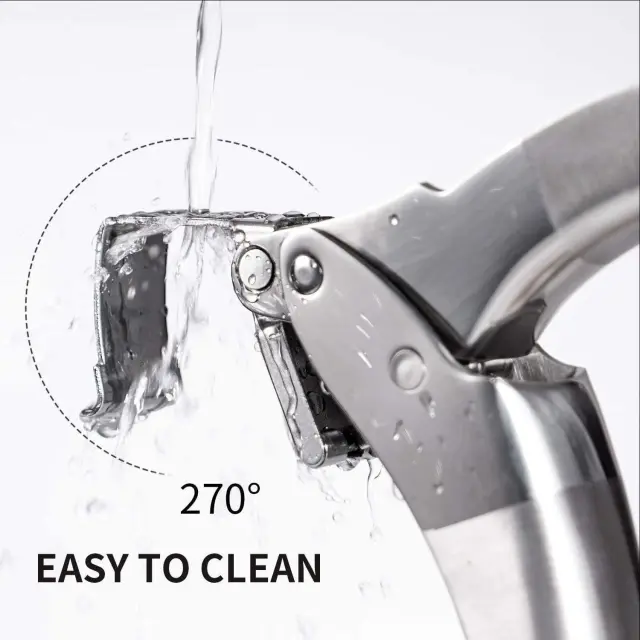 Enostavno čiščenje: stiskalnica je zasnovana z odstranljivimi deli, kar omogoča enostavno čiščenje po uporabi. Preprosto ga sperite pod tekočo vodo ali ga postavite v pomivalni stroj za enostavno čiščenje.