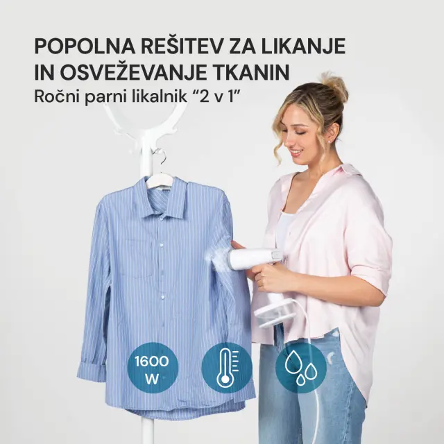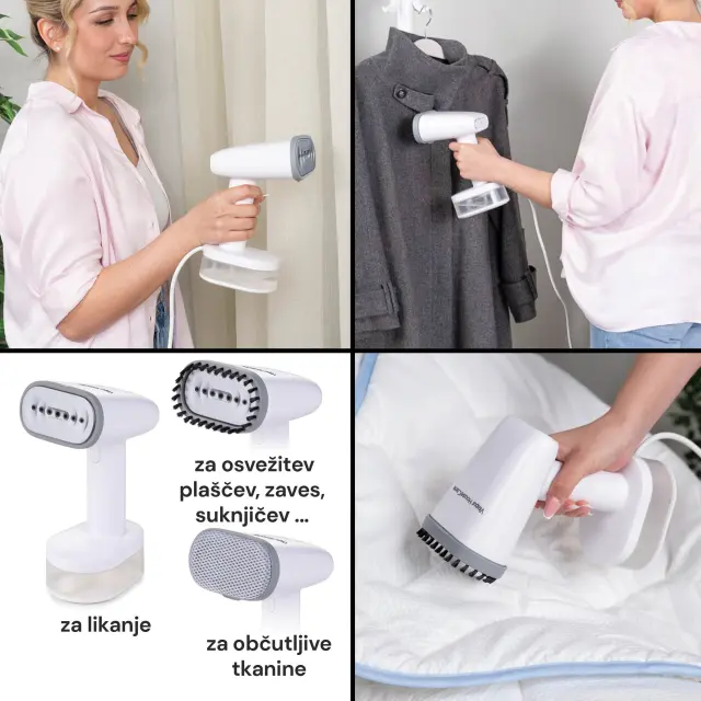 Parni likalnik Vitapur HouseCare je zasnovan za hitro in priročno glajenje in osveževanje tvojih oblačil. Ne glede na to, ali si doma ali na poti, ročni parni likalnik bo postal tvoj zvesti pomočnik pri doseganju urejenega videza v le nekaj minutah. Uporabiš ga lahko na oblačilih iz različnih materialov, saj je zasnovan, da nežno odstranjuje gube brez poškodb tkanin, ki se lahko zgodijo pri klasičnem likanju. Na uporabo je pripravljen v le nekaj sekundah. Uporabi tudi priloženo ščetko za tkanino, ki omogoča odpiranje vlaken in boljši prodor pare v tkanino. Rezultat? Učinkovit postopek likanja, ki oblačila osveži in njihovo nego naredi res preprosto, kjerkoli si.