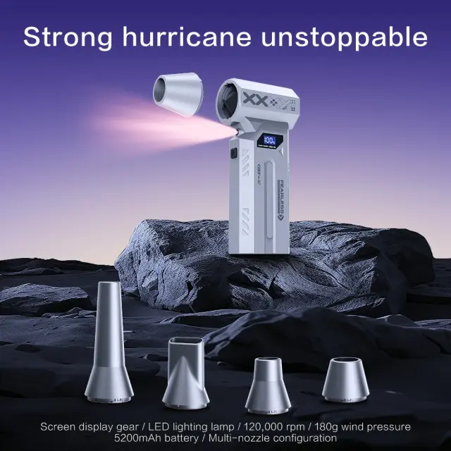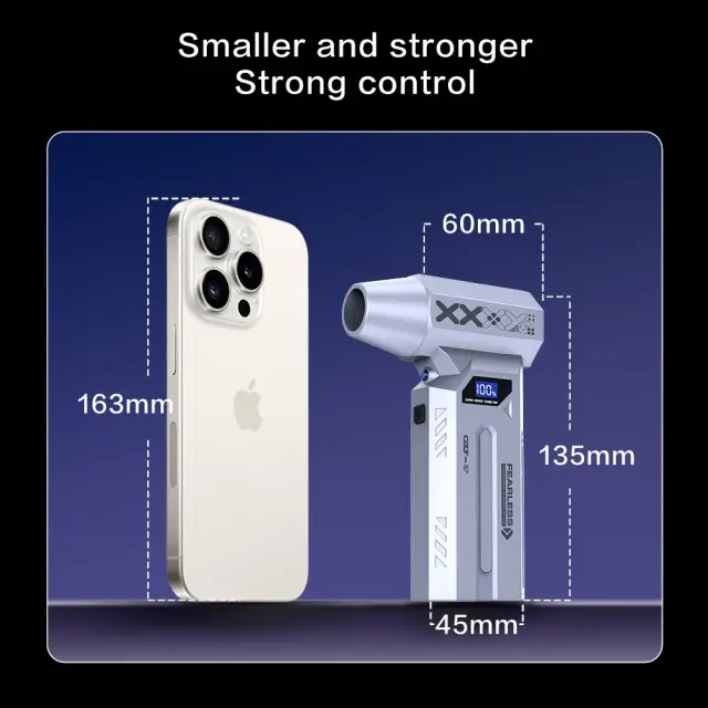 Močno odstranjevanje prahu: Izkusite neprimerljivo moč čiščenja z našim ročnim zračnim puhalnikom. Opremljen z visokohitrostnim 29-milimetrskim motorjem, ki doseže 110000 vrtljajev na minuto, ta puhalnik ustvarja zračni tlak 180 G, učinkovito odstranjuje prah, ostanke in delce s tipkovnic, elektronike, notranjosti avtomobilov in težko dostopnih mest. Njegova zasnova turbo ventilatorja zagotavlja koncentriran in močan pretok zraka, zaradi česar so opravila čiščenja hitra in učinkovita. Popoln za vzdrževanje brezhibnega okolja v vašem domu, pisarni ali vozilu. Ta akumulatorski zračni puhalnik je obvezen za vse, ki iščejo priročno in zmogljivo rešitev za čiščenje.