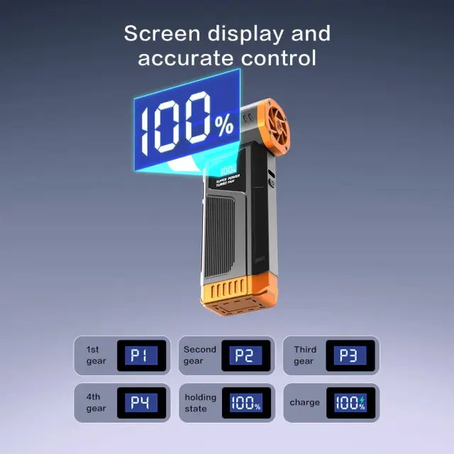 Ročni prenosni zračni puhalnik z LED zaslonom in nastavljivo hitrostjo vetra Orange