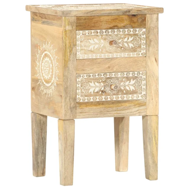 Nočna omarica je ročno izdelana iz trdnega mangovega lesa, gostega in robustnega trdega lesa s čudovitimi rjavimi in zlatimi lisami ter vzorci na površini. Vsak korak v procesu izdelave je izveden z največjo previdnostjo, ne glede na to, ali gre za brušenje ali lakiranje, ročna izdelava pa prispeva k spektakularnemu retro stilu. Čudoviti vzorci lesa zagotavljajo, da je vsak kos pohištva edinstven in malo drugačen od ostalih. Nočna omarica ima trdno površino, na katero lahko odložite nočno svetilko, budilko ali karkoli drugega, kar potrebujete ob postelji. Predalnik nudi veliko prostora za organizirano shranjevanje različnih manjših stvari, da bodo vedno pri roki.