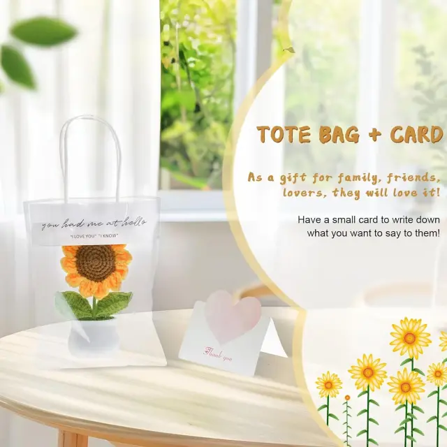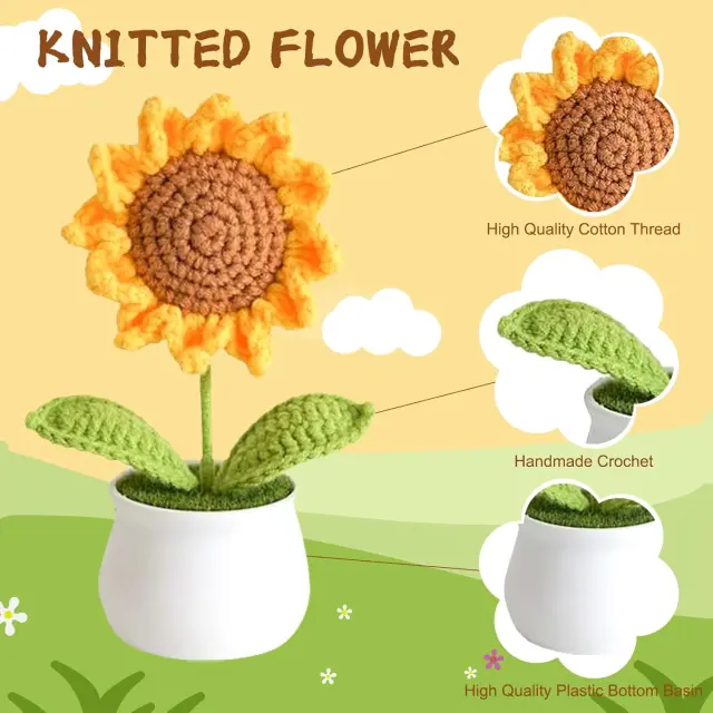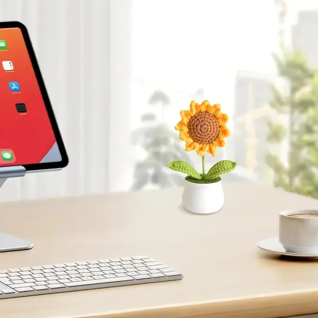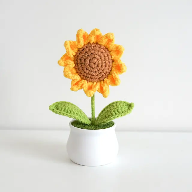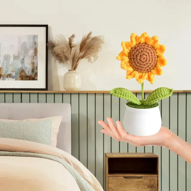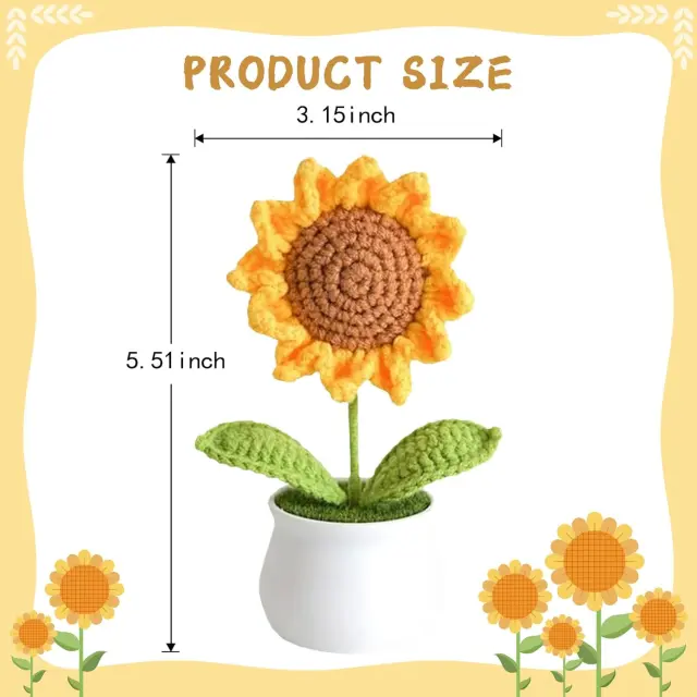 Ročno izdelano z ljubeznijo: Vsaka kvačkana sončnica je skrbno ročno izdelana, s poudarkom na vsaki podrobnosti. Prefinjeni šivi in živahne barve vnesejo v vaš dom pridih topline in osebnosti.