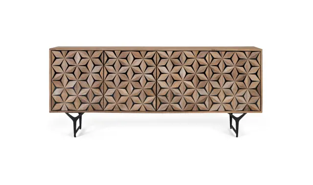Ročno izdelana 4-vratna omarica iz mangovega lesa, 177 cm