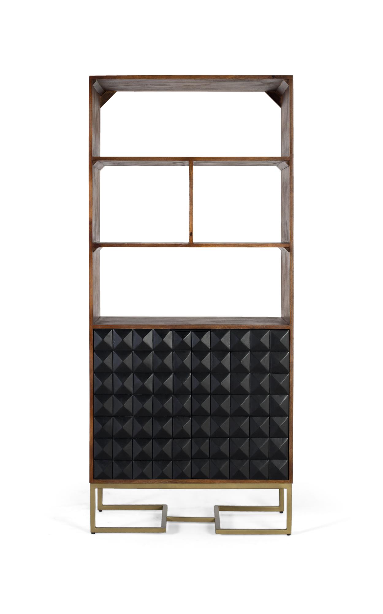 Ročno izdelana knjižna omara iz mangovega lesa z zlatimi nogami
