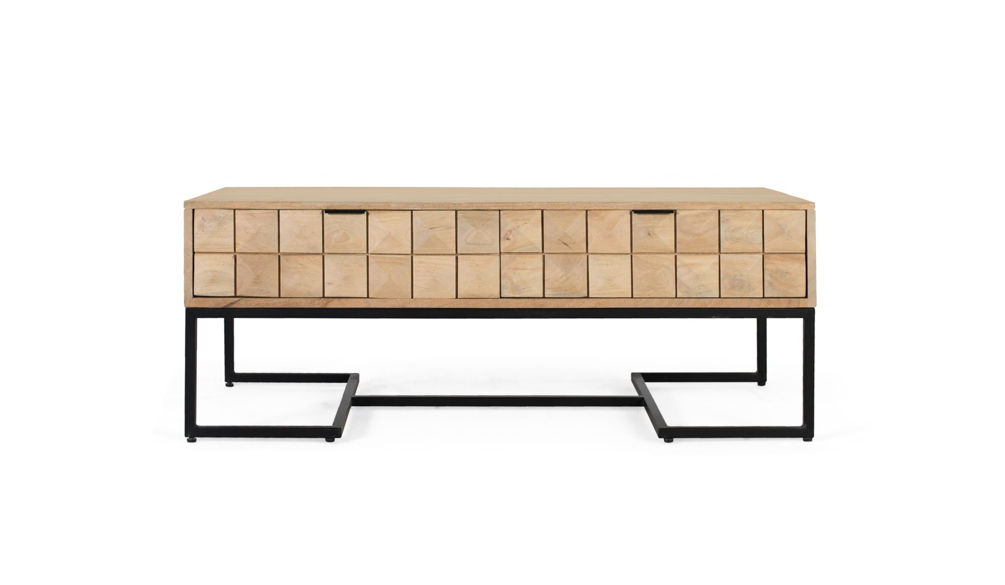 Ročno izrezljana in ročno izdelana klubska mizica iz mangovega lesa, 120 cm