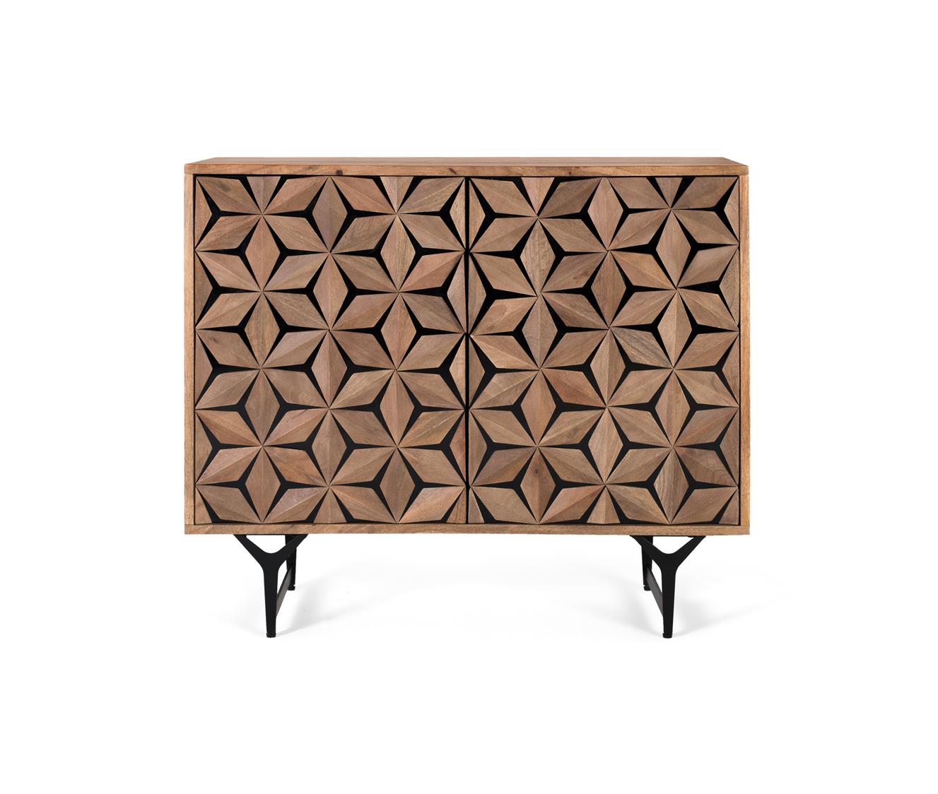 Ročno izrezljana omarica z dvojimi vrati iz mangovega lesa